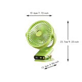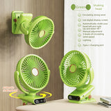 Green LED Desk Fan with Automatic Shaking Head - USB Rechargeable, Adjustable Wind Speed